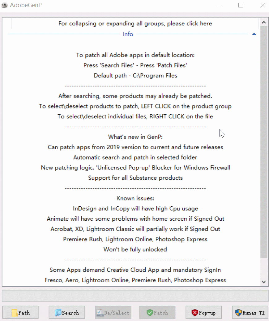 如果想修补默认安装位置的所有Adobe软件: