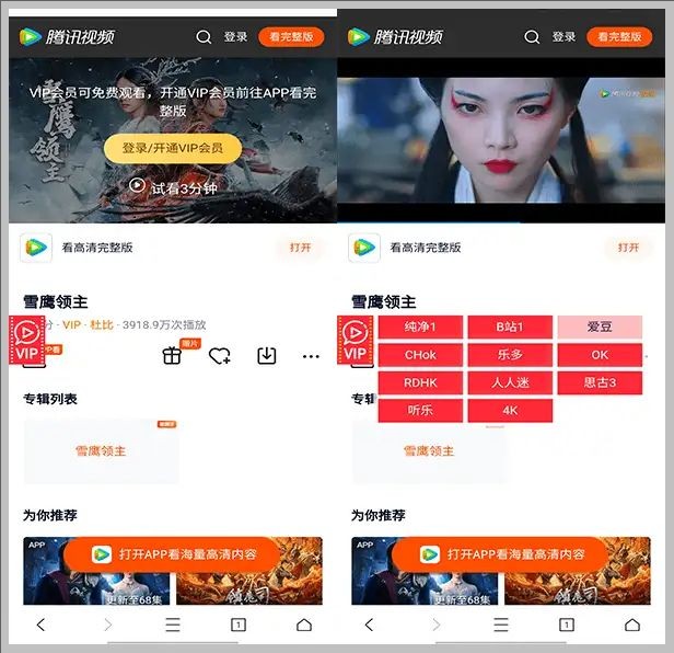 安装后,在腾讯视频或哔哩哔哩的视频播放界面,将出现VIP解析的小浮窗,点击即可解析VIP视频。
